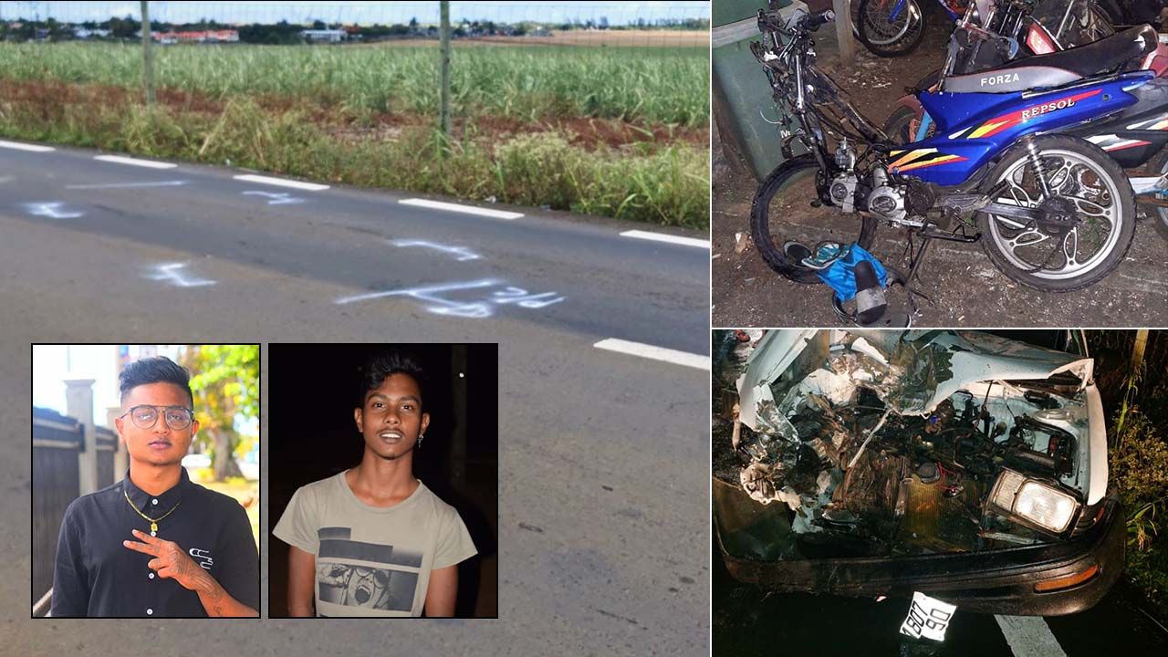 Dhiraj Gohee, 18 ans, et Kelen Vencatasamy, 20 ans, ont connu le même destin tragique. Ces deux amis de L’Espérance-Trébuchet circulaient à motocyclette sur la route principale de leur localité, dans la soirée du mardi 30 novembre, quand ils sont entrés en collision avec une voiture. La violence de l’impact les a projetés sur l’asphalte. Ils sont morts sur le coup.