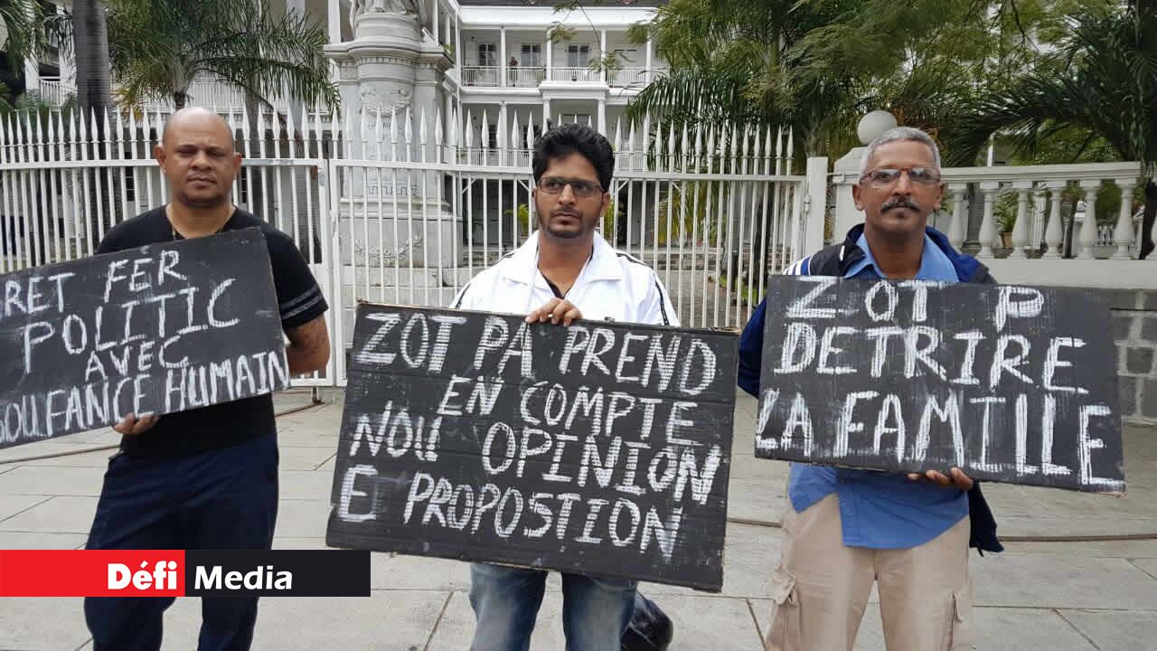 Une dizaine de membres et sympathisants de l'Organisation non gouvernementale (ONG) SOS Papa s’est réunie devant le Parlement en début d’après-midi ce lundi 6 juin. Ils manifestaient contre le Protection from Domestic Violence (Amendment) Bill qui a été présenté en première lecture à l’Assemblée nationale mardi dernier. Ce projet de loi vise à amender la Protection from Domestic Violence Act afin de mieux protéger les victimes de violence domestique.