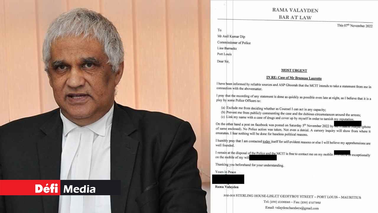 Ci-dessous la correspondance de Me Rama Valayden envoyée à la police :
