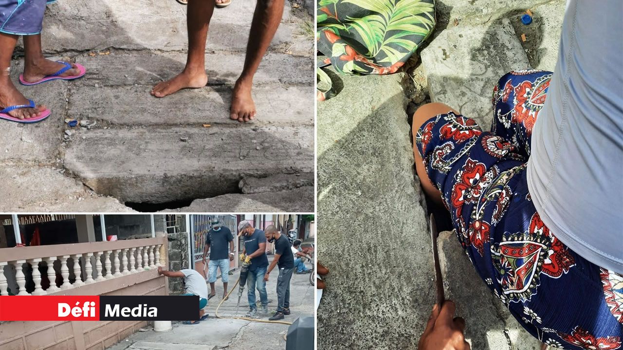 Jeudi, une piétonne s'était retrouvée coincée à cause d'une fente dans un trottoir. Blessée, elle a dû être transportée en urgence à l'hôpital Jeetoo. Ce sont des habitants de la localité qui l'ont aidée à se libérer après avoir agrandi le trou à l'aide de plusieurs outils.
