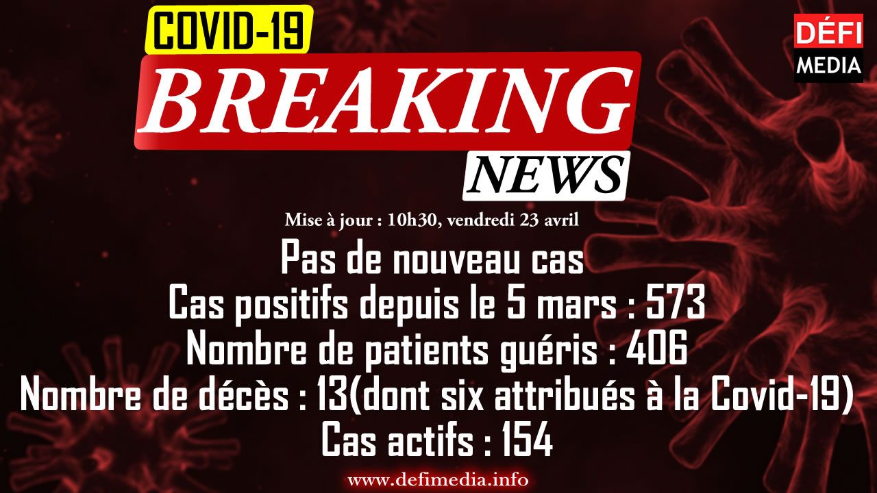 Pas de nouvelle contamination locale à la Covid-19 enregistrée lors des dernières 24 heures, indique un communiqué du ministère de la Santé émis ce vendredi matin 23 avril.