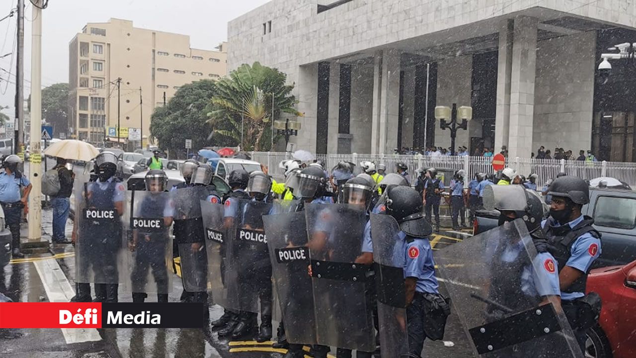 La police a déployé des éléments de la Special Supporting Unit (SSU) aux abords de la New Court House, Port-Louis, place afin d'assurer la sécurité des sympathisants de la famille Kistnen et des membres du public.