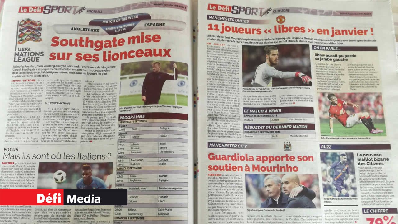 Le numéro 13 du Défi Sport est chez les marchands de journaux depuis ce vendredi matin. La Ligue des Nations domine la Une avec la rencontre Angleterre-Espagne de samedi soir. Même en cette période de break, la Premier League est omniprésente avec les derniéres news sur le Big Six (Man City, Man Utd, Tottenham, Liverpool, Chelsea et Arsenal).
