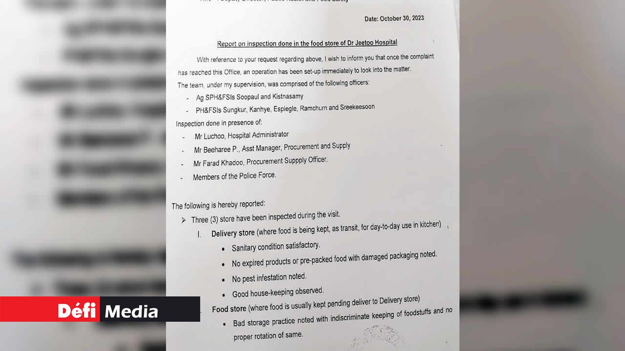 Dans un rapport, le service sanitaire du ministère de la Santé confirme la présence de produits alimentaires périmés dans le Food Store de l’hôpital Dr A. G. Jeetoo, à Port-Louis. Cette révélation fait suite à une inspection menée le 30 octobre 2023.