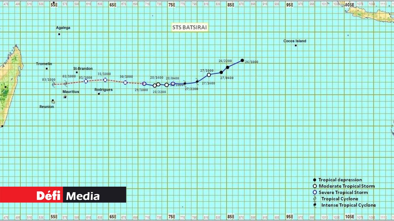 Elle se déplace dans une direction générale de l'ouest à environ 15 km/h. Sur cette trajectoire, Batsirai s'approche de Rodrigues et représente une menace potentielle pour l'île.