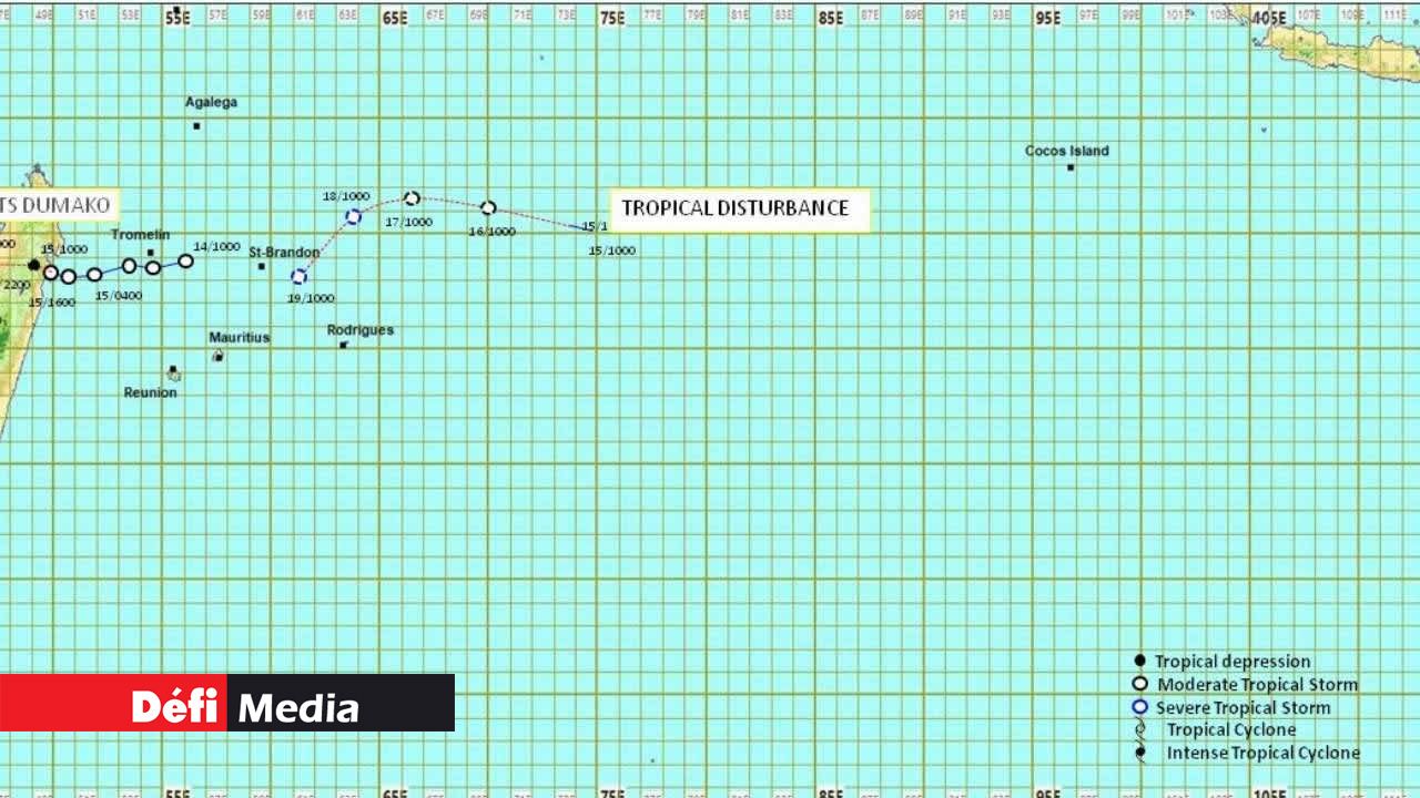 Une perturbation tropicale, qui pourrait s’intensifier en tempête tropicale modérée à partir de ce jeudi, se trouve à 1 600 km au nord-est de Maurice. Elle sera baptisée Emnati.