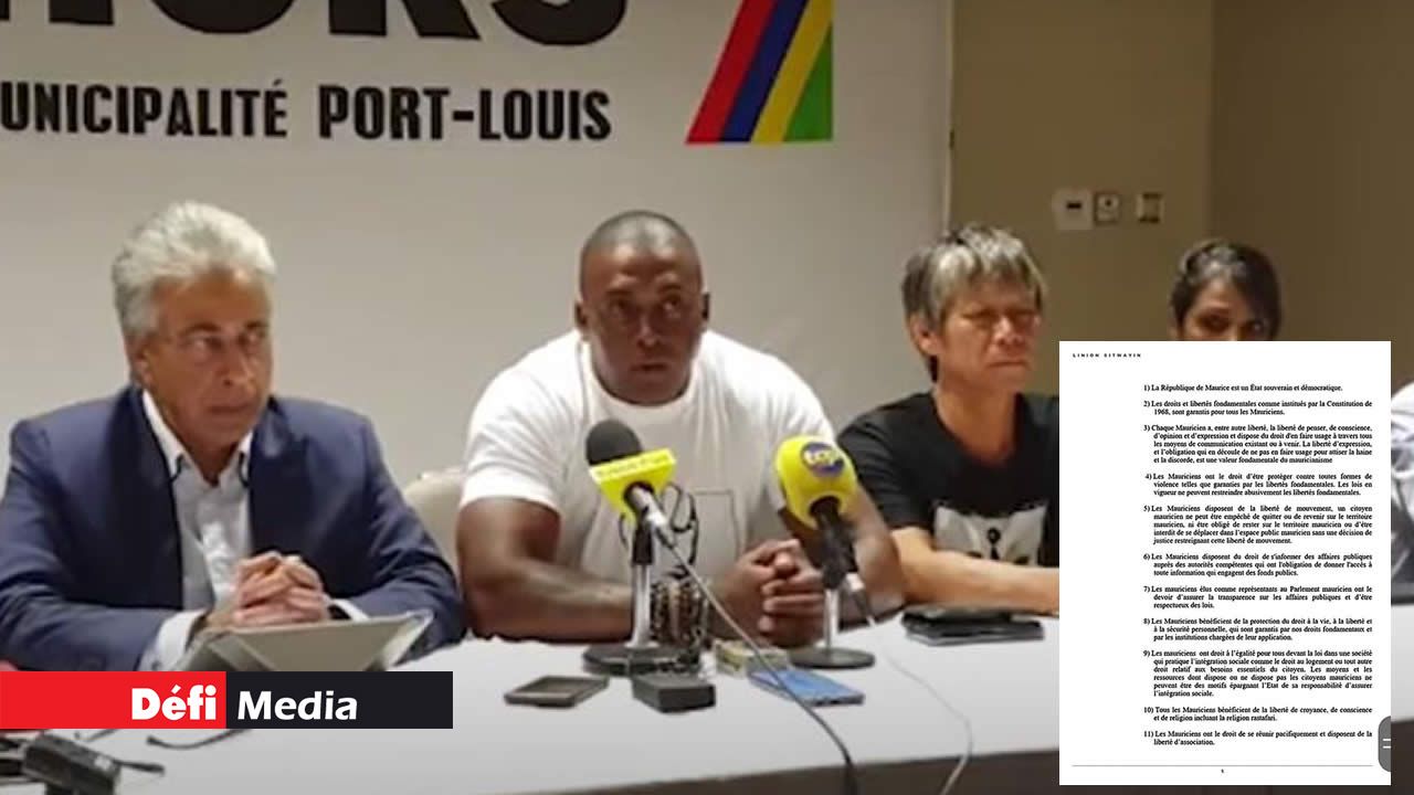Le Défi Quotidien est en la présence du document qui a été signé mardi après-midi qui évoque la « déclaration conjointe » à l’issue de la réunion tenue lundi entre les leaders de l’opposition et les représentants de Linion Sitwayen. Le document, qui comporte 10 signatures, aborde quatre axes : le départ du gouvernement Jugnauth et des manifestations pour le bien-être et l’avenir du pays ; l’unification des politiciens afin d’approfondir le système démocratique du pays et d’éradiquer le fléau de la corruption ; l’institution d’un comité mixte regroupant les parlementaires et les citoyens dans le but de produire la base nécessaire pour un changement fondamental de la société ; et la mise en œuvre d’une politique voulue par les citoyens et pour les citoyens. 36 points, formulés par les représentants des citoyens, sont attachés à la déclaration conjointe.