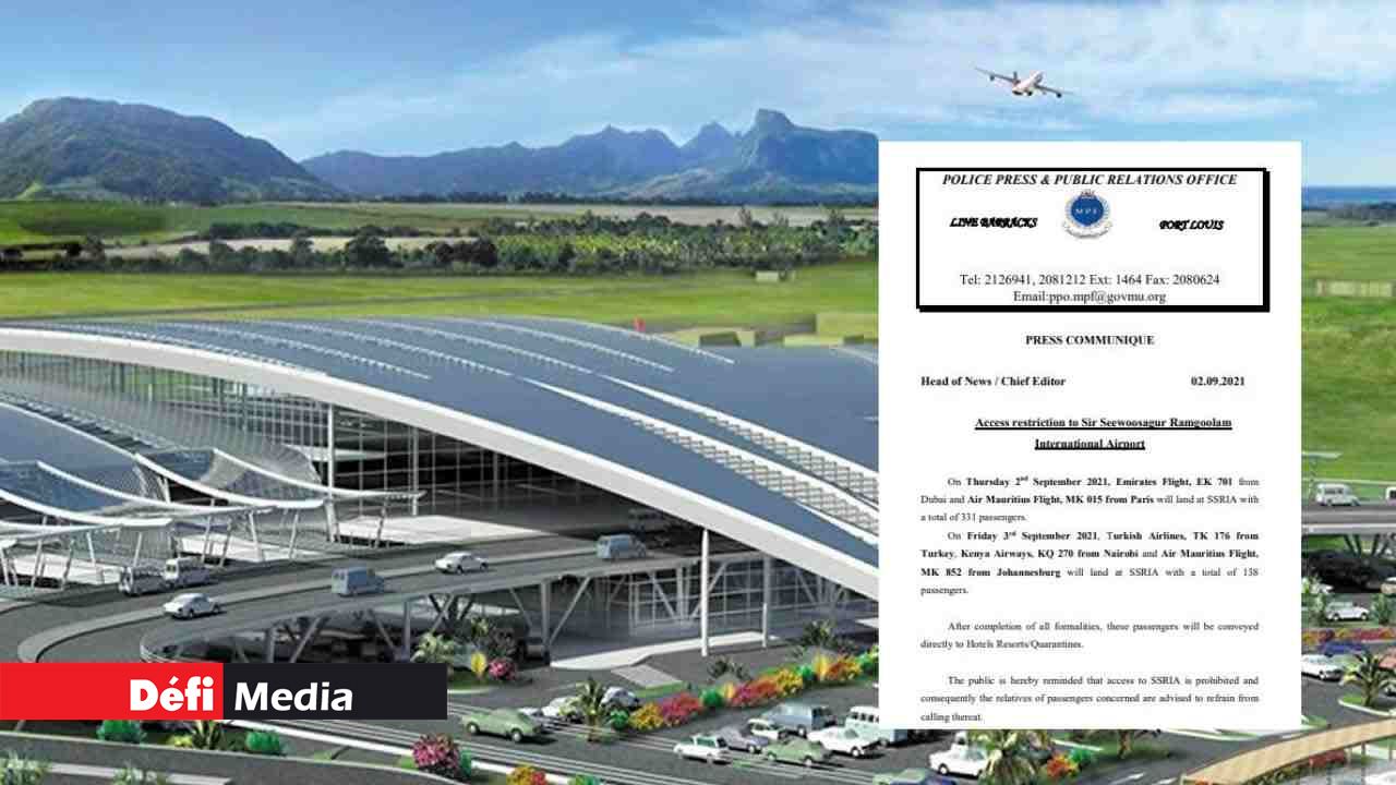 Dans un communiqué, émis ce jeudi 2 septembre, le Police Press Office rappelle au public que l’accès à l’aéroport international SSR est restreint et demande aux proches de passagers des vols qui atterriront ces jeudi 2 septembre et vendredi 3 septembre de ne pas se rendre à Plaisance.