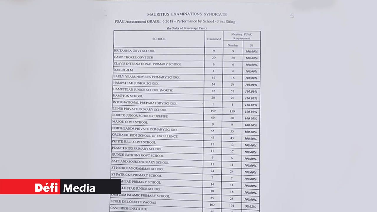 23 établissements, dont les Britannia Govt School, Camp-Thorel Govt School, Petite-Julie Govt School ou encore le Collège Lorette de Curepipe, affichent un taux de réussite de 100%. Un peu plus de 80% des candidats ont réussi dans les core subjects, soit 80,3% en Anglais et 80,4% en Mathématique. Le français, la matière la mieux travaillée, affiche un taux de réussite de 82,12%. Par ailleurs, 76,5% des candidats ont réussi en Histoire Géo et en Science et 77,9% en Kreol Morisien. Le taux de réussite pour les langues orientales varie entre 71 et 75%.