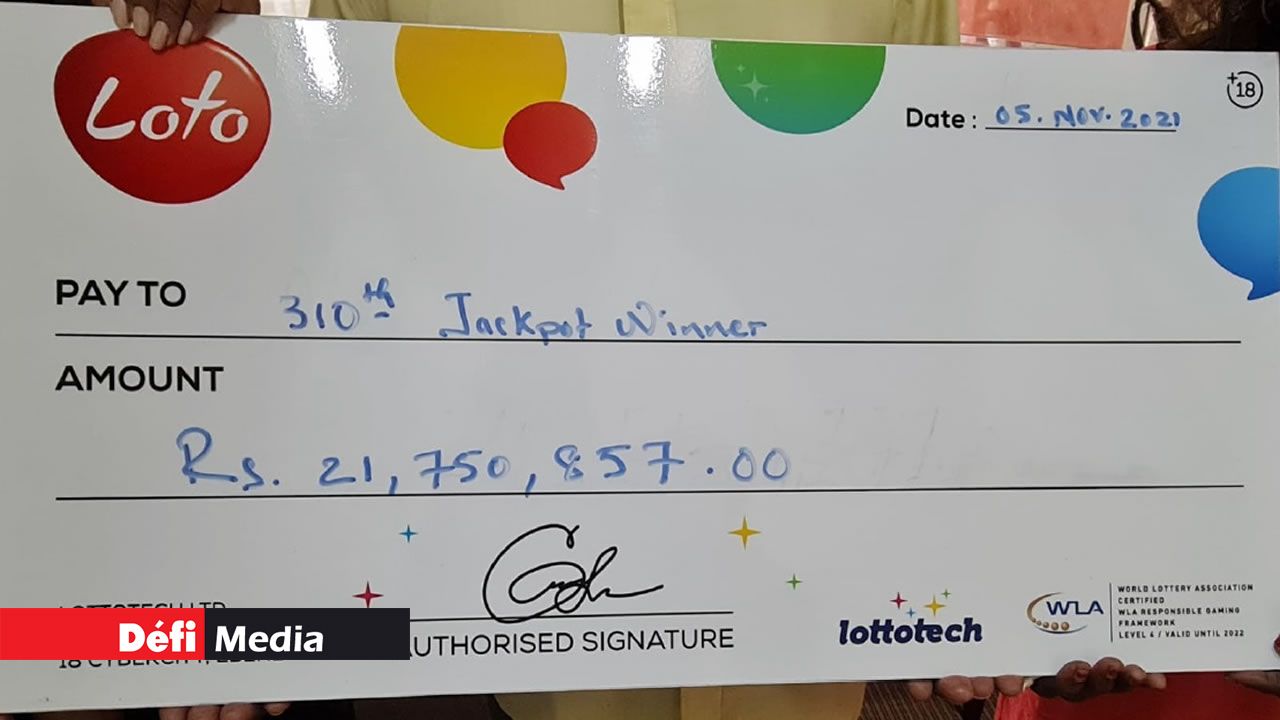C’est une retraitée qui a décroché le gros lot de Rs 21,75 millions du 760e tirage du loto, annonce Lottotech ce samedi 6 novembre 2021 dans un communiqué de presse. Cette habitante de Triolet qui a souhaité rester anonyme est allée récupérer son chèque le vendredi 5 novembre 2021 au siège de Lottotech à Ébène.