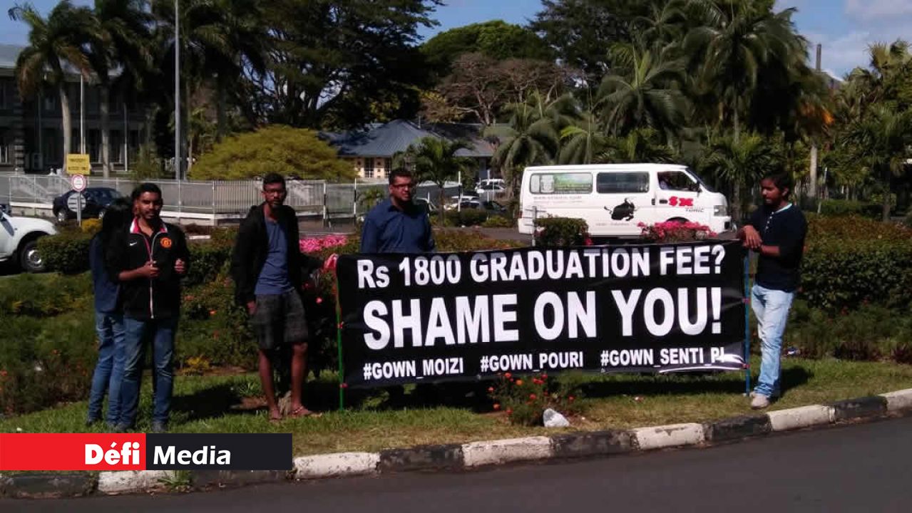 Des étudiants de l’université de Maurice (UoM) ont tenu un rassemblement vendredi. Certains brandissaient une banderole sur laquelle on pouvait lire : « Rs 1 800 Graduation Fee 2017, Shame on you, #gown moizi #gown pouri #gown senti pi. » Ce qui a déclenché cette manif ? Une vidéo postée sur les réseaux sociaux par Saahir Goolfee, président de la Students’ Union de l’UoM.