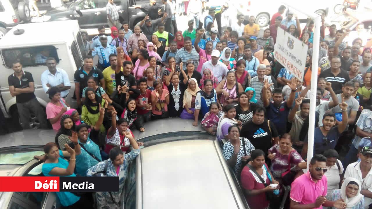 Défilée des députés de l’Opposition mardi 19 avril à la mairie de Port-Louis, où des marchands ambulants se sont rassemblés pour protester contre leur relogement.