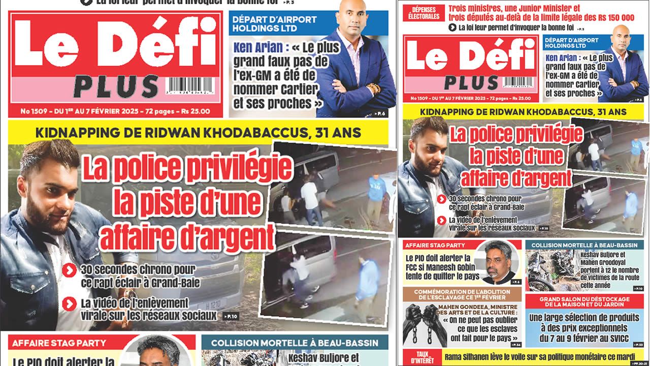 Voici la Une du Défi Plus. Le journal est en vente à Rs 25 l'exemplaire aux endroits habituels (supermarchés, boutiques, tabagies, superettes). Bonne lecture !