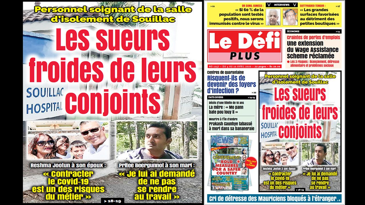 Ce n’est pas une sinécure d’être conjoint d’un membre du personnel soignant qui travaille directement avec les patients atteints du Covid-19. La vie n’est plus un fleuve tranquille, étant hanté par la peur des risques que prend son conjoint. Comment ne pas avoir la chair de poule d’entendre sa femme infirmière avouer que « le risque zéro n’existe pas et bizin atan a tou ». C’était le frisson chez le couple Roshan et Reshma Jootun. Après l’annonce des premiers cas, Pritee Beergunnot n’a pu s’empêcher de demander à son époux, Amrish, de ne pas se rendre au travail. « Mo premier reaction mo dire li pas bizin aller. Li dire moi non, so travail ca, li bizin aller », soutient la trentenaire.