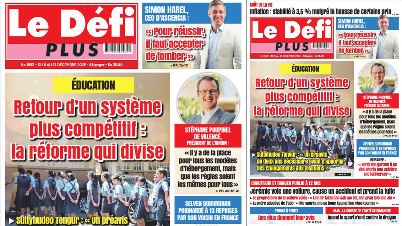 Voici la Une du Défi Plus. Le journal est en vente à Rs 25 l'exemplaire aux endroits habituels (supermarchés, boutiques, tabagies, superettes). Bonne lecture !