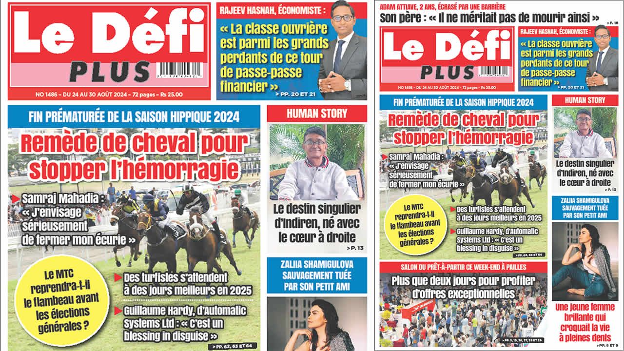 ? Voici la Une du Défi Plus. Le journal est en vente à Rs 25 l'exemplaire aux endroits habituels (supermarchés, boutiques, tabagies, superettes). Bonne lecture !