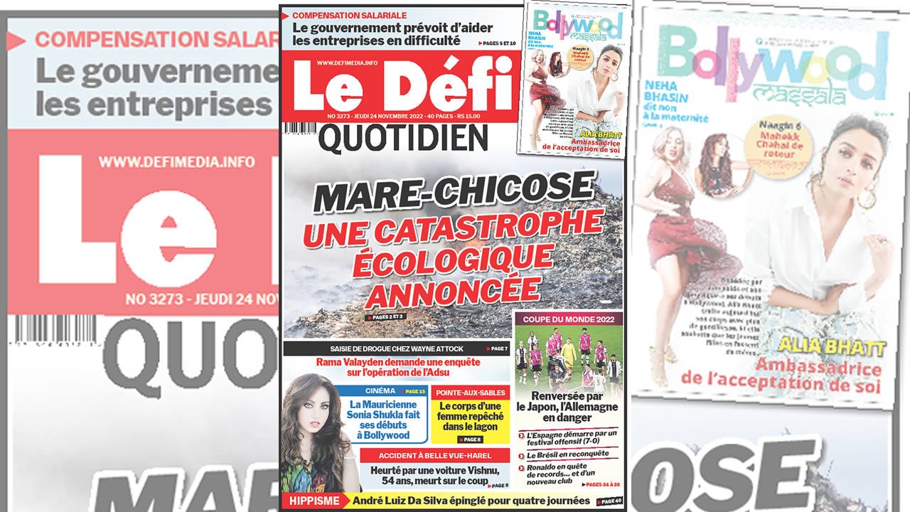 ? Voici la Une du Défi Quotidien. Le journal est en vente à Rs 15 l'exemplaire aux endroits habituels (supermarchés, boutiques, tabagies, superettes). Bonne lecture !