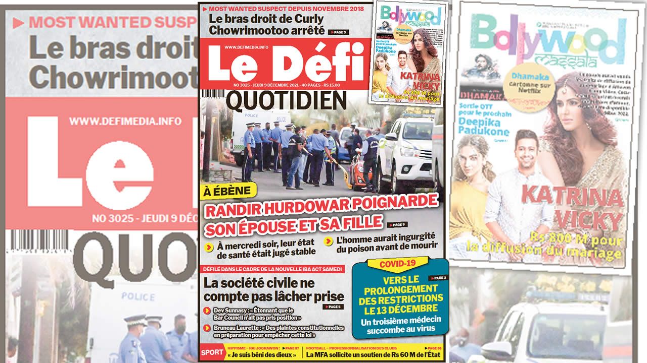 ? Voici la Une du Défi Quotidien. Le journal est en vente à Rs 15 l'exemplaire aux endroits habituels (supermarchés, boutiques, tabagies, superettes). Bonne lecture !