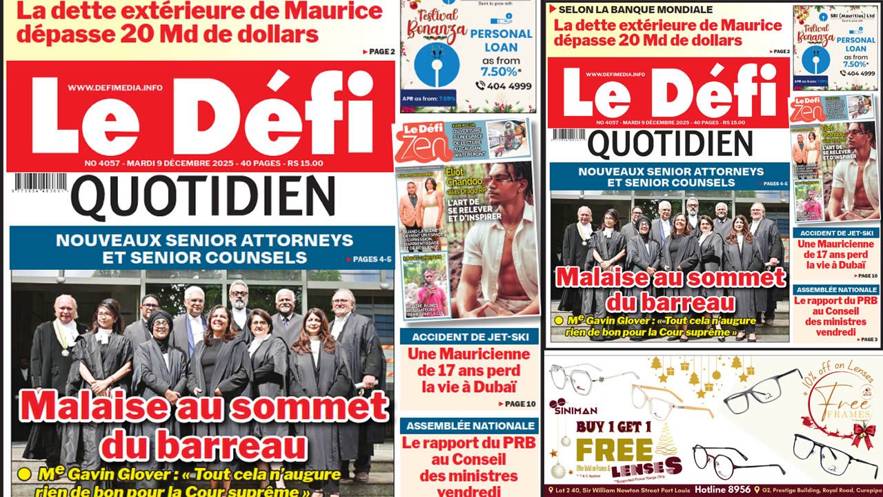 Voici la Une du Défi Quotidien. Le journal est en vente à Rs 15 l'exemplaire aux endroits habituels (supermarchés, boutiques, tabagies, superettes). Bonne lecture !